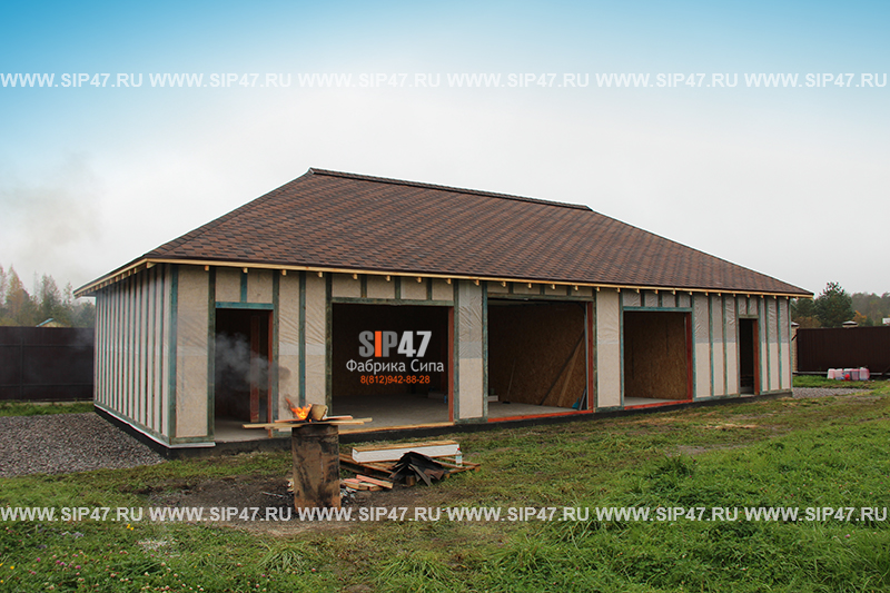 Гараж из СИП панелей для двух автомобилей и катера from prosip47.ru